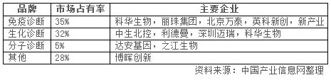 國內(nèi)IVD細分市場份額和主要龍頭企業(yè)